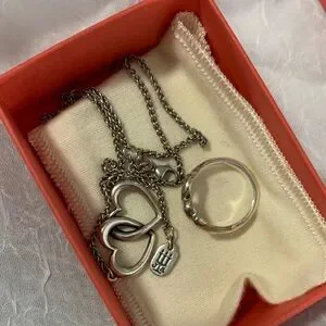 James Avery Set OF Silver Double Heart Necklace with Silver Ring