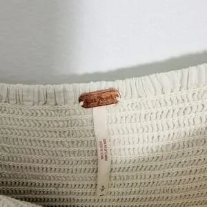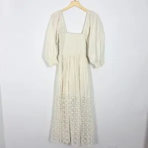Free People Perfect Storm Midi Dress Ivory Lace Eyelet Smocked Puff Sleeve Small