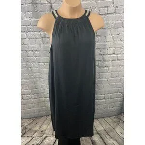 J. Jill NWT 2X Black Halter Dress Beaded Strap Sleeveless Shift Knee Length