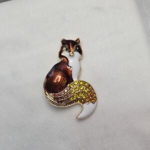 Women's Brown Fox Brooch Retro Style Pin Rhinestones Sparkling Elegant NWOT