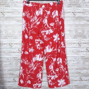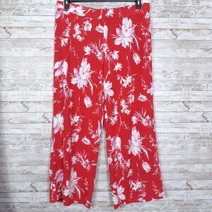 Isaac Mizrahi Pebble Knit Wide Leg Pants XL Pull On Red Floral NWOT 168A