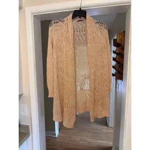 Tahari Size XS Oversized Open Knit Cardigan Sweater Top Light Pink Color