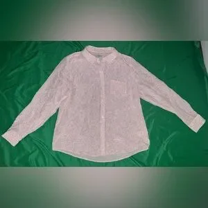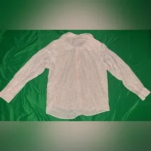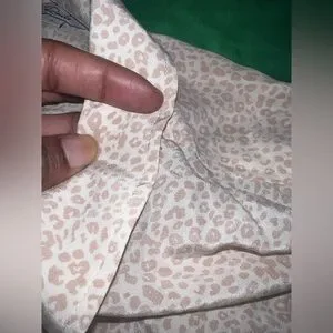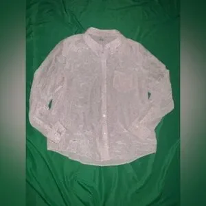 SMALL HOLE UNDER COLLAR WHERE THE TAG WAS SEE PHOTOS. ALSO, TOP IS SHEER.