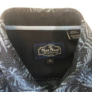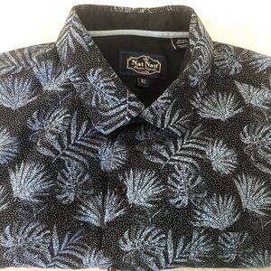 Nat Nast Hawaiian Shirt Mens Size XL Silk Blend Blue Tropical Leaves