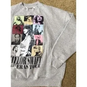 Taylor Swift The Eras Tour Graphic Sweatshirt Grey Crewneck Pullover Medium
