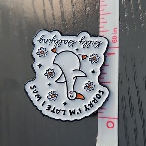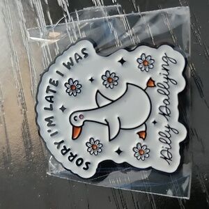 Embrace playful elegance with this charming duck brooch. Featuring a delightful design in white and black, it's a perfect accessory for any outfit.