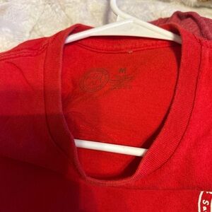 Puppie Love red short sleeve tee featuring a playful firefighter dog graphic. Soft, casual style perfect for everyday wear. Bright red color and bold print add fun, youthful flair.