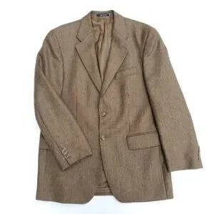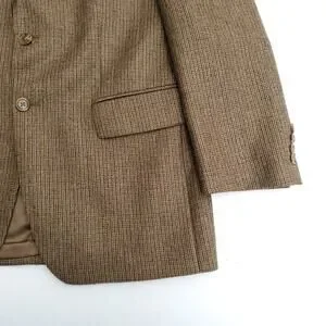 Chaps Ralph Lauren Brown Houndstooth Classic Wool Blazer Sport Coat Jacket 40R