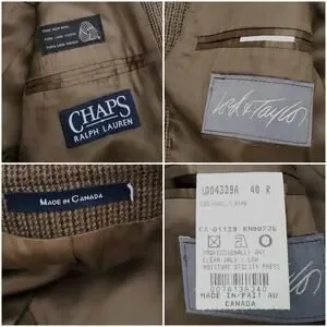 Chaps Ralph Lauren Brown Houndstooth Classic Wool Blazer Sport Coat Jacket Sz 40R