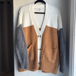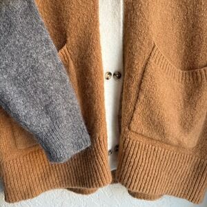 Madewell Womens M Cardigan Sweater Colorblock Wool Alpaca Brown Cream Gray