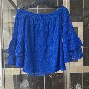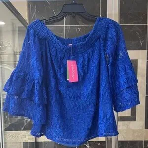 Lilly Pulitzer Royal Blue Lace Off-Shoulder Ruffle Sleeve Top, size M, NWT.
