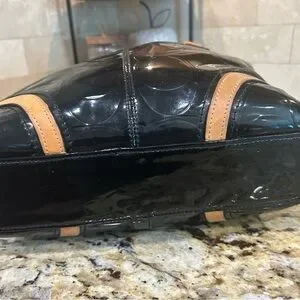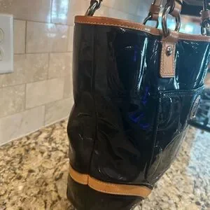 COACH Black Patent Leather Tote with Tan Leather Trim