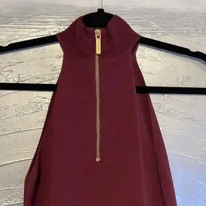 Michael Kors Halter Midi Dress With Gold Zipper Size XS Burgundy
