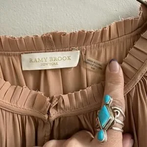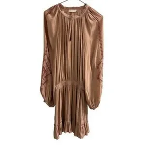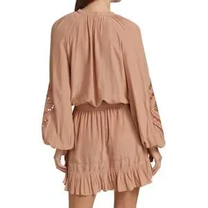 Ramy Brook Emmett Carmel Ruffle Boho Mini Dress Long Sleeve Smocked M Like New