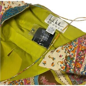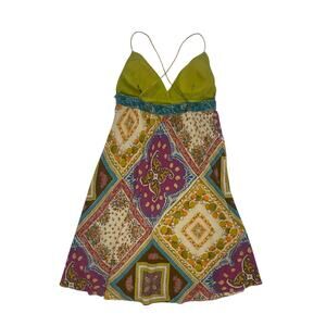 Nicole Miller Y2K Deadstock Strappy Multi Print Silk Dress w Beaded Waistline