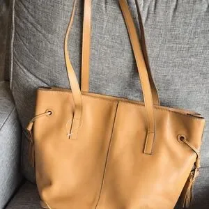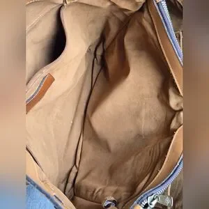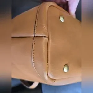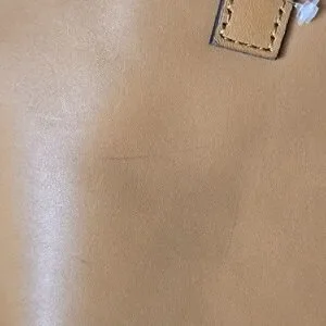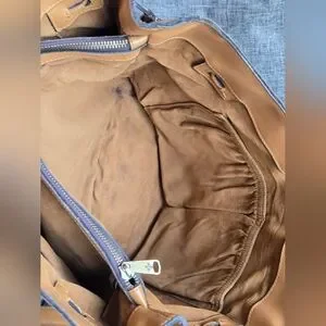 Inside zipper of the tote is broken.(the one on the side pocket of the tote) A couple light scuffs om the side of the purse-There is a mark on the bottom of the purse and the bottom corners show some wear. (see pictures)