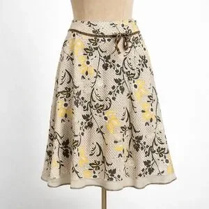 Vintage Floral Boho 100% Silk Midi Skirt Sz 10 Brown Cottagecore Preppy Granola