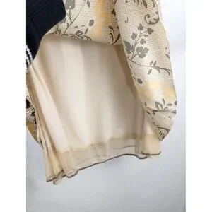Keywords: Silk Skirt, Floral Midi, Earth Tones, Whimsigoth, Cottagecore, Boho Chic, Office Wear, Lightweight, Natural Fiber, Feminine, Retro Aesthetic, Botanical, Tiered Hem, Velvet Detail, Designer Skirt
