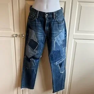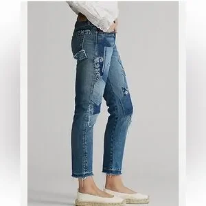 Ralph Lauren Polo Avery Boyfriend Crop Distressed Patchwork Jeans size 27