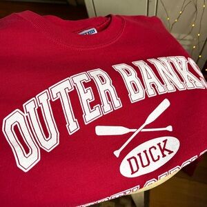 Overall in really good used condition. Red Outer Banks Sweatshirt. Women’s size Large