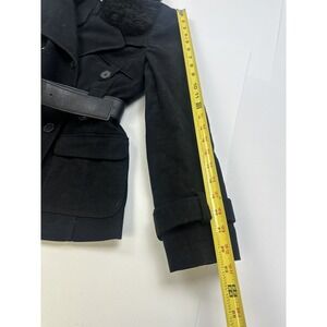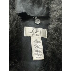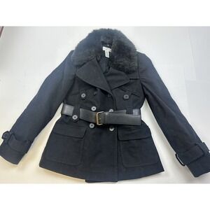 Ann Taylor Petite Double Breasted Pea Coat Womens 0P Black Faux Fur Belted