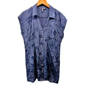 Vero Moda Shirt Dress Women's XL Navy Blue Button Front Casual Summer Mini