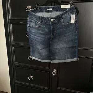 These blue jean shorts from Maurices feature a stylish cuffed hem and a subtle distressed look, perfect for a casual day out. The medium-dark wash with natural fading adds a touch of vintage charm, making them a versatile addition to your wardrobe.