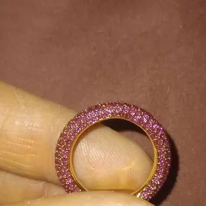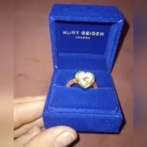 Vibrant heart-shaped ring. Features multicolor stones. Pink stones outlining the ring, this piece is gorgeous. Size 8 ,new in box and will come with a dust bag! Elegant and eye-catching design.