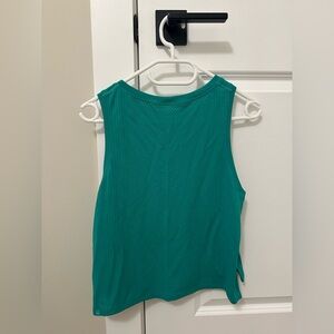 A green coloured Racerback cropped tank top from Lululemon. Size 6