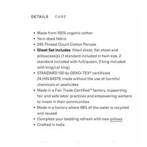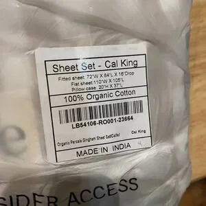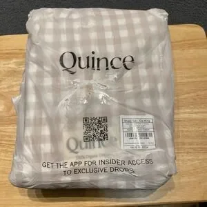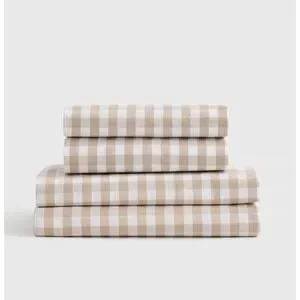 Quince Classic Organic Percale Gingham Sheet Set Cal King Size Cafe 100% Cotton
