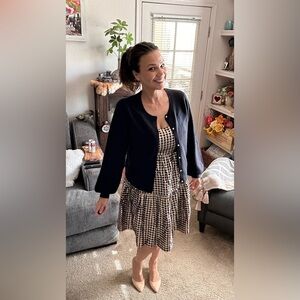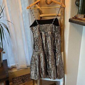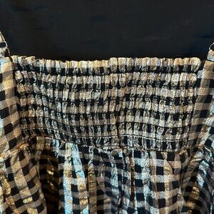 J Crew Lurex Black Gold tired gingham adjustable straps stretch back dress sz 8