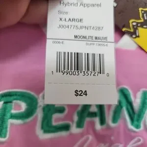 NWT. Peanuts pink short-sleeve V-neck top featuring Snoopy graphic and playful patches. Soft, casual knit with contrast white trim for everyday comfort. Designed for easy styling and cheerful pink color. Size XL