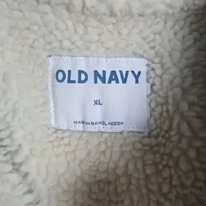 EUC Old NAVY Light Wash Denim Bomber Sherpa-Lined Jacket - Cream Sherpa SIZE XL