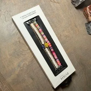 Posh Pink, White & Gold Multi-Stack Beaded Bracelet Set for Apple Watch.