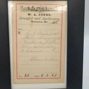 This is an antique druggist and apothecary prescription and receipt from the 1800s. 1869, to be exact, written on the month and day 6-9.