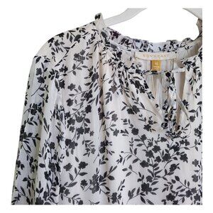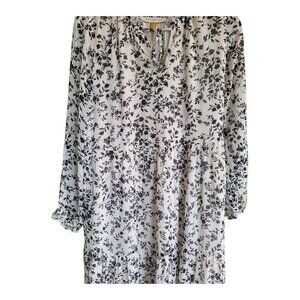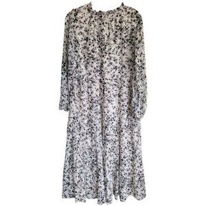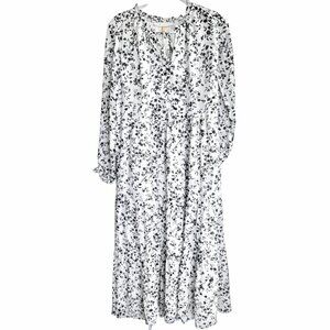 DownEast Mimi Dress XS White Black Floral Prairie Midi Boho Tiered Rayon NWT