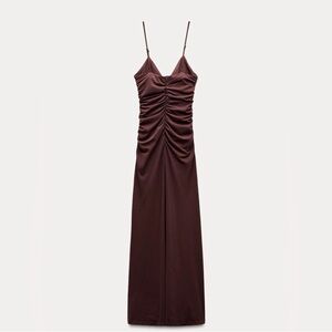 Zara Chocolate Brown Maxi Dress with Rosette Accents