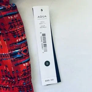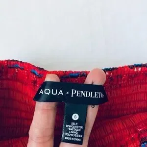 Aqua Red Patterned Smocked A-Line Mini Skirt with Blue Accents