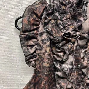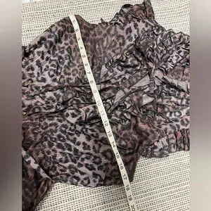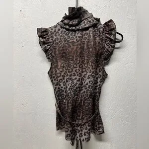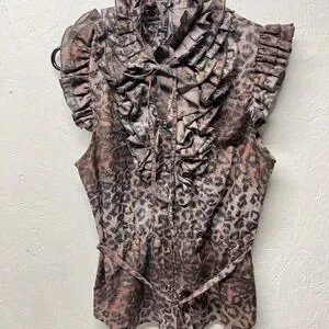 Lapis animal print cheetah ruffle belted sleeveless blouse top button front M