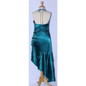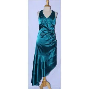 Poly USA #2718 Asymmetrical Satin Dress With Side Ruching-Size L-TEAL-NWT