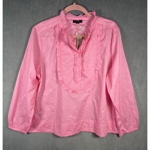 J Crew AJ417 NWT Woman's XL Long-sleeve Ruffle Shirt Floral Eyelet Pink Cotton