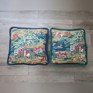 Handmade Equestrian Accent Pillows Set Of 2 Horse Deer Dogs Cabin Farmhouse