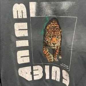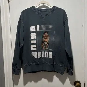 ANINE BING wild cat crewneck sweatshirt. Minor fading/whitening in certain spots. Two small stains by the armpit on the front and one small stain on the arm in the back. I am not sure what the stains are and I am not sure if they will come out. No other callouts. A rare style. Stock photo added for reference.