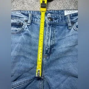 Rag & Bone Dre Slim Boyfriend Jeans Raw Hem Cuffed Mid rise Low Rise Dora 29. Very good preowned condition. Can be worn cuffed or not cuffed. Rise is about 9 inches. No flaws. Measurements jn photos.