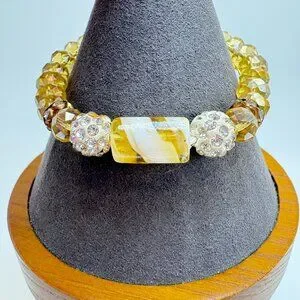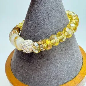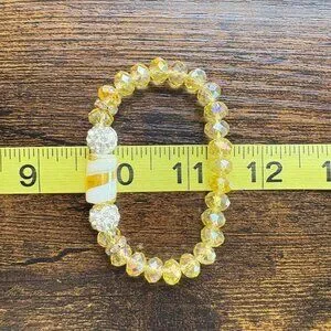 Gemstone Yellow Glass Bead White Crystal Rondel Stretch Bracelet Fashion One SZ