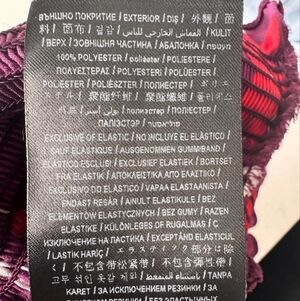 A rich burgundy/deep purple base adorned with contrasting red and white floral and leaf motifs.