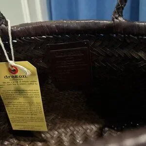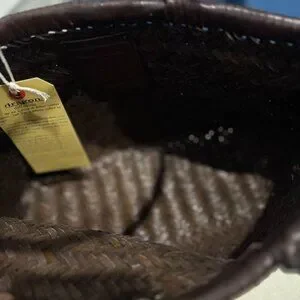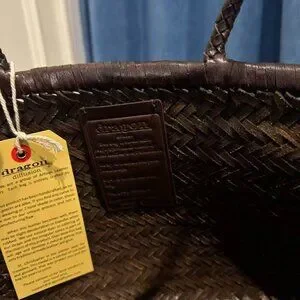Dragon Diffusion Triple Jump Small woven leather basket tote in dark brown.