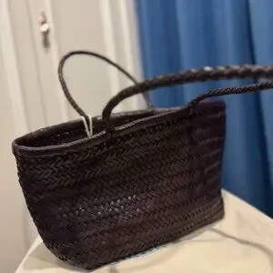 Dragon Diffusion Triple Jump Small Woven Leather Tote Dark Brown Basket Bag