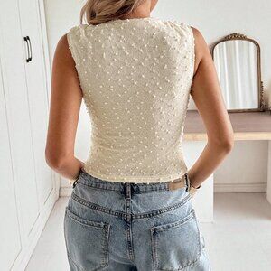 An apricot casual sleeveless tank top with a round neck and open‑back straps offers a fresh, relaxed look for everyday wear. The lined interior adds a soft feel while the slim‑fit cut highlights a sleek silhouette. Regular‑length hem and a classic regular shape provide easy layering, and the open back detail adds a subtle touch of style. Perfect for pairing with jeans, shorts or skirts for a breezy, modern outfit.