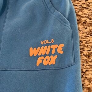 Soft blue fleece joggers from . Elastic waistband and cuffs for a comfortable fit. Front pockets for everyday convenience. Vibrant blue color adds playful style.